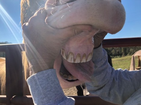 Stick your tongue out! And brush your teeth!