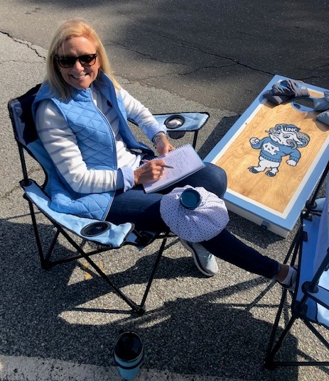 Icing the knee and blocking the corn hole!